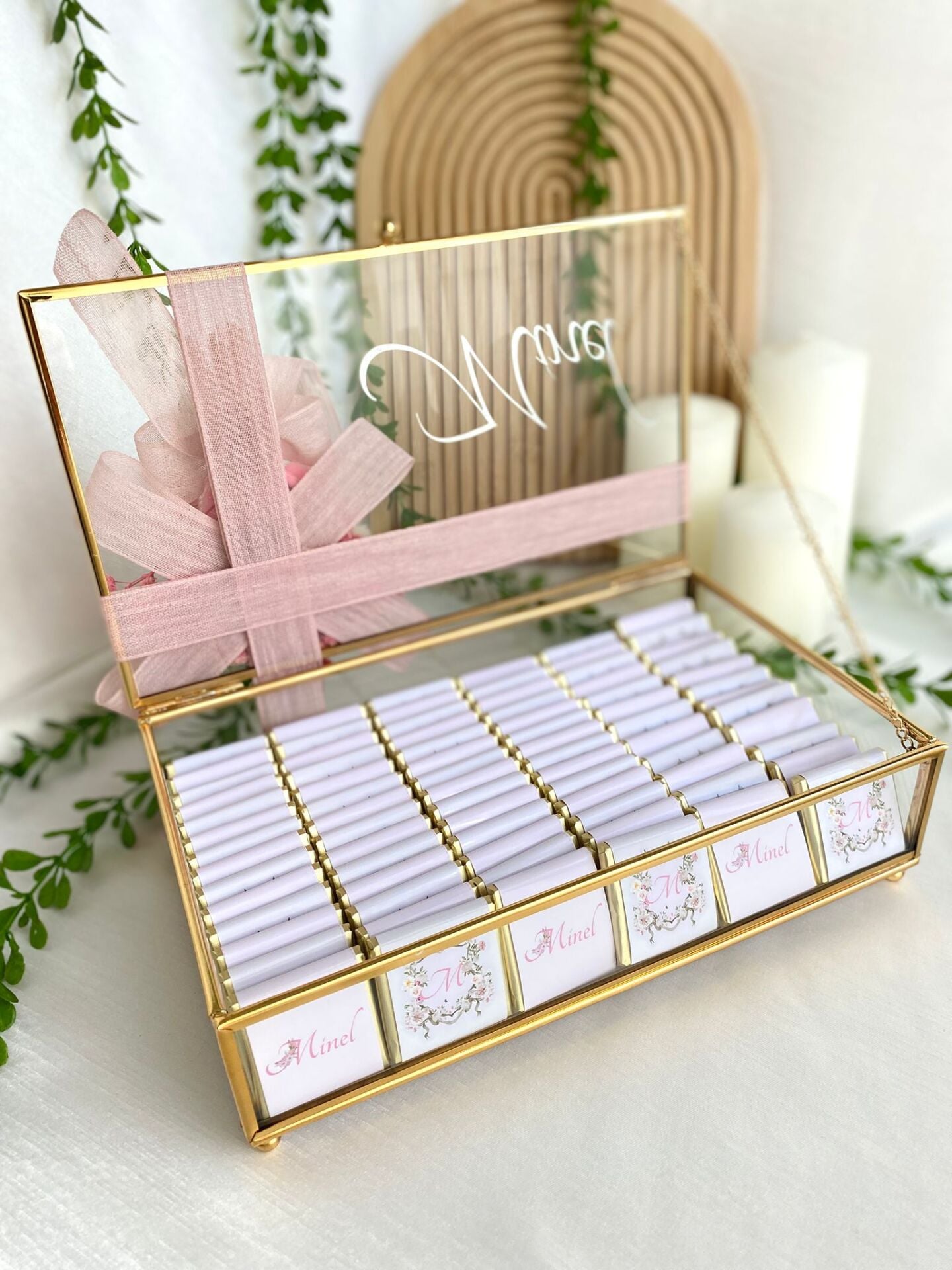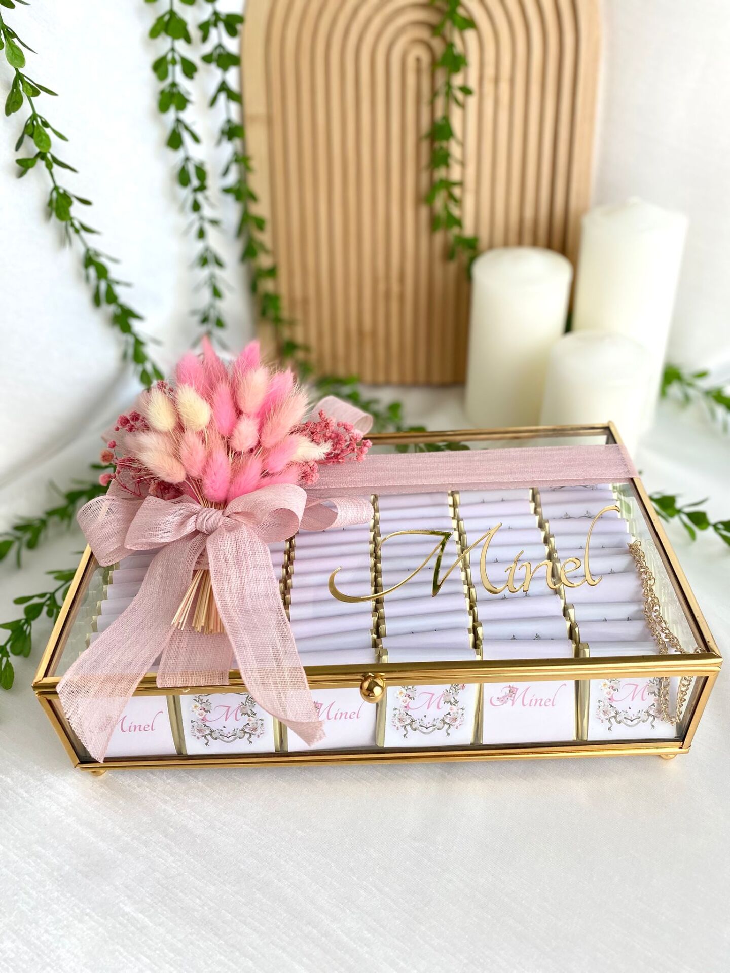 Çiçekli Kız Cam Çikolata Kutusu