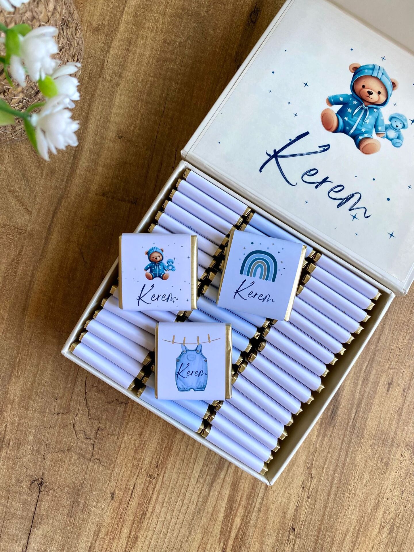 Erkek Bebek Mıknatıslı Kare Çikolata Kutusu