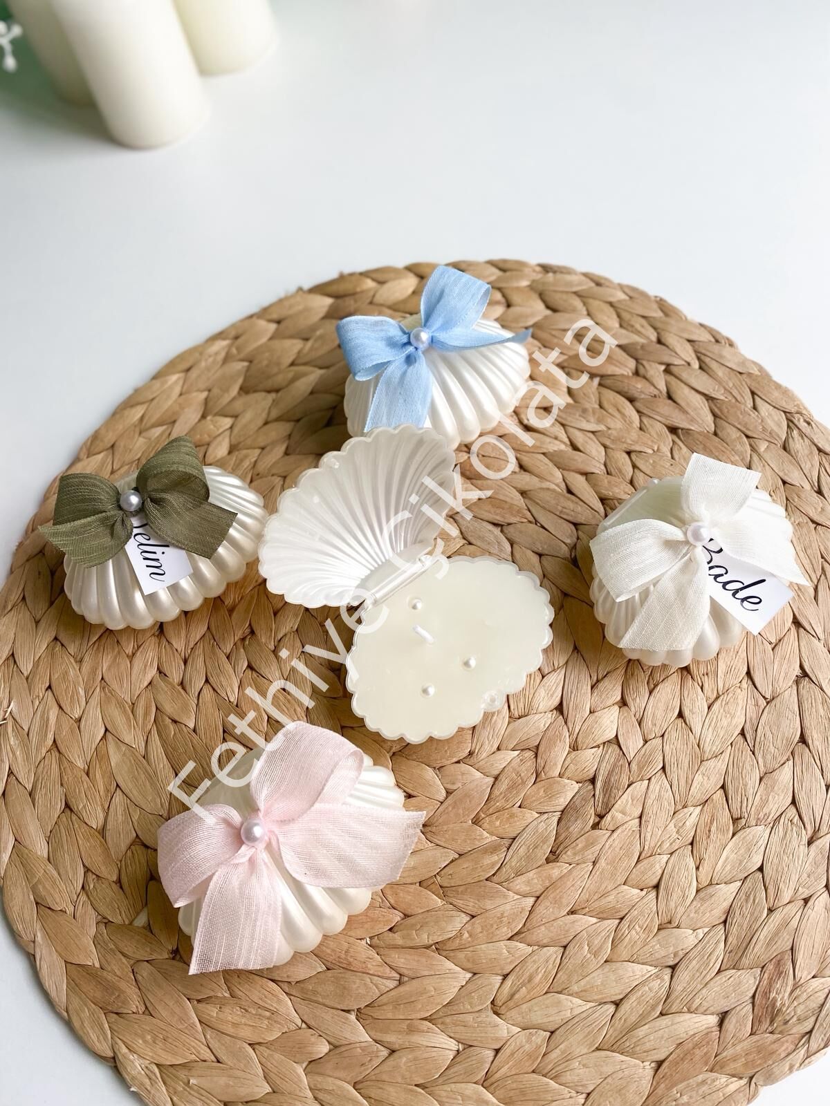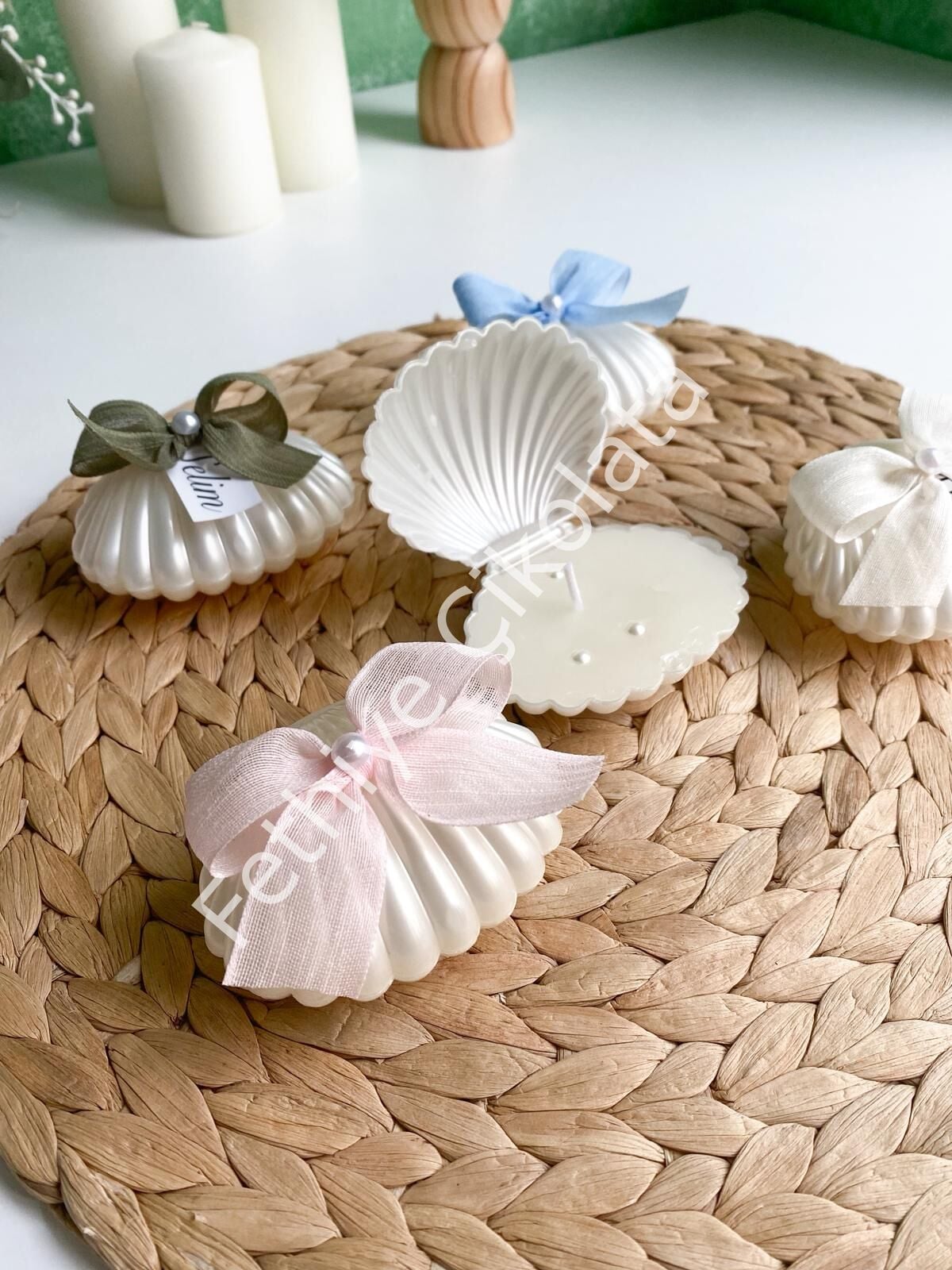İnci detaylı kurdeleyle süslenen istiridye formundaki mini mum, zarif tasarımıyla özel günlerinize şıklık katar. Kapağı açıldığında hoş kokusuyla küçük ama unutulmaz bir hatıra sunar.