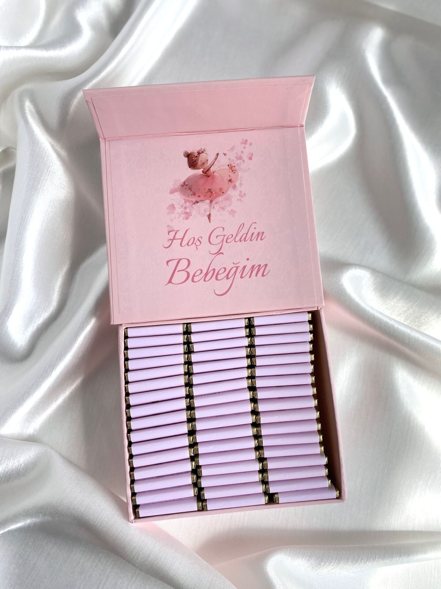 Kız Bebek Mıknatıslı Kare Çikolata Kutusu