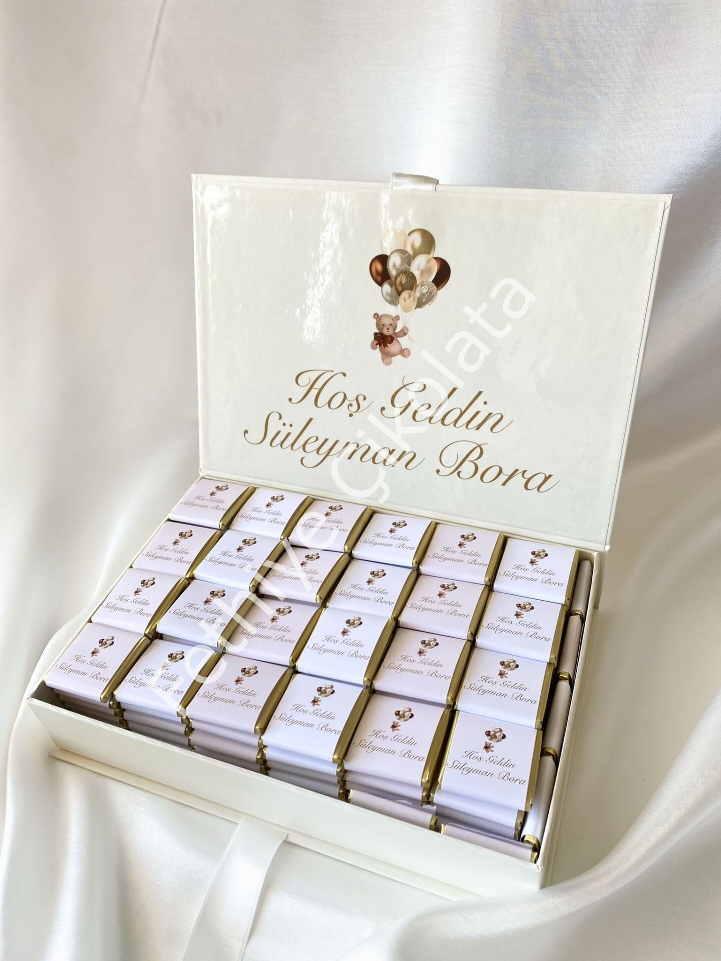 Çikolata Ebadı: 4x4 cm - Kutu Ebadı: 27x19x4,5 cm KREM RENGİ