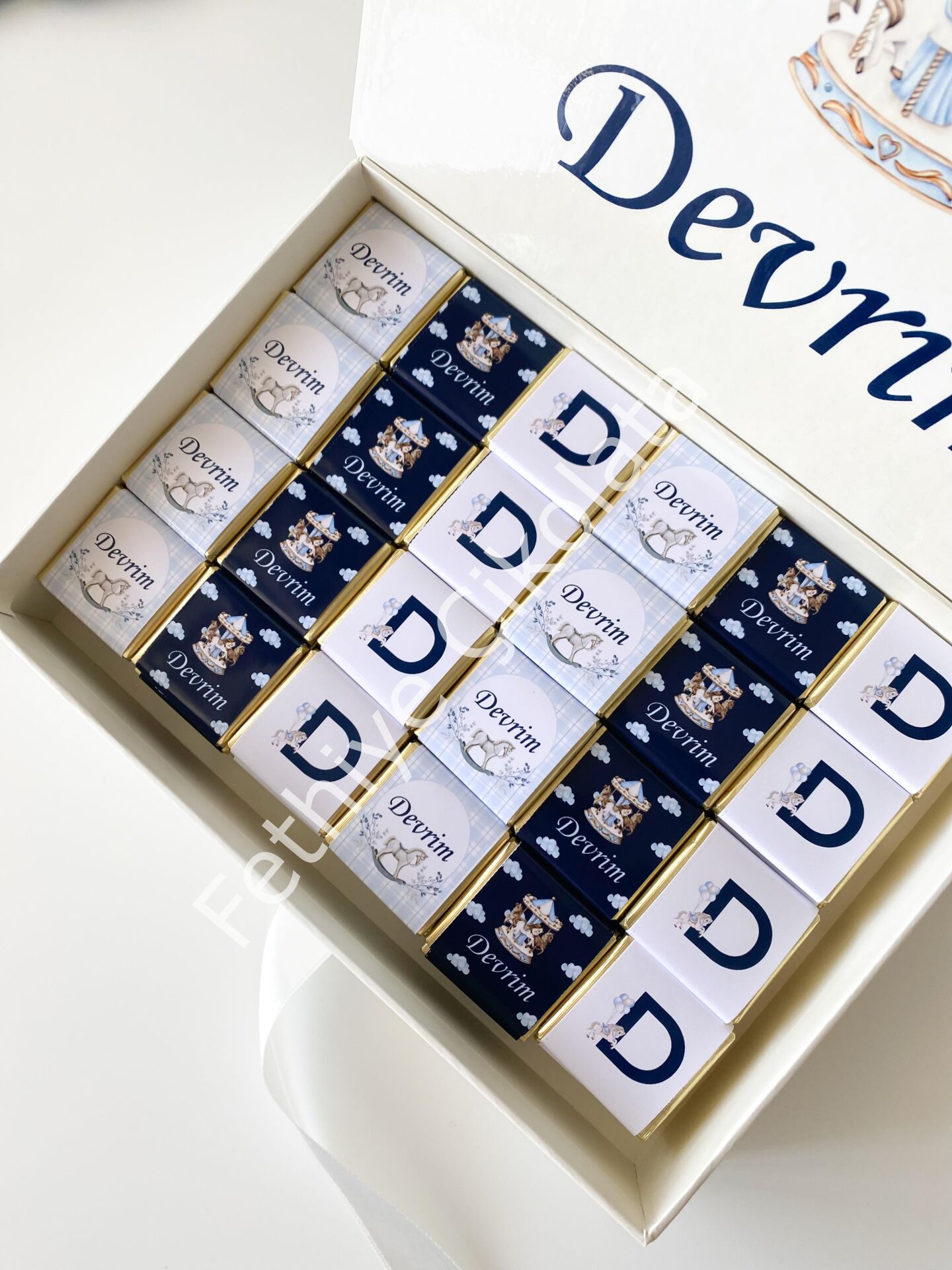 Çikolata Ebadı: 4x4 cm - Kutu Ebadı: 27x19x4,5 cm KREM RENGİ