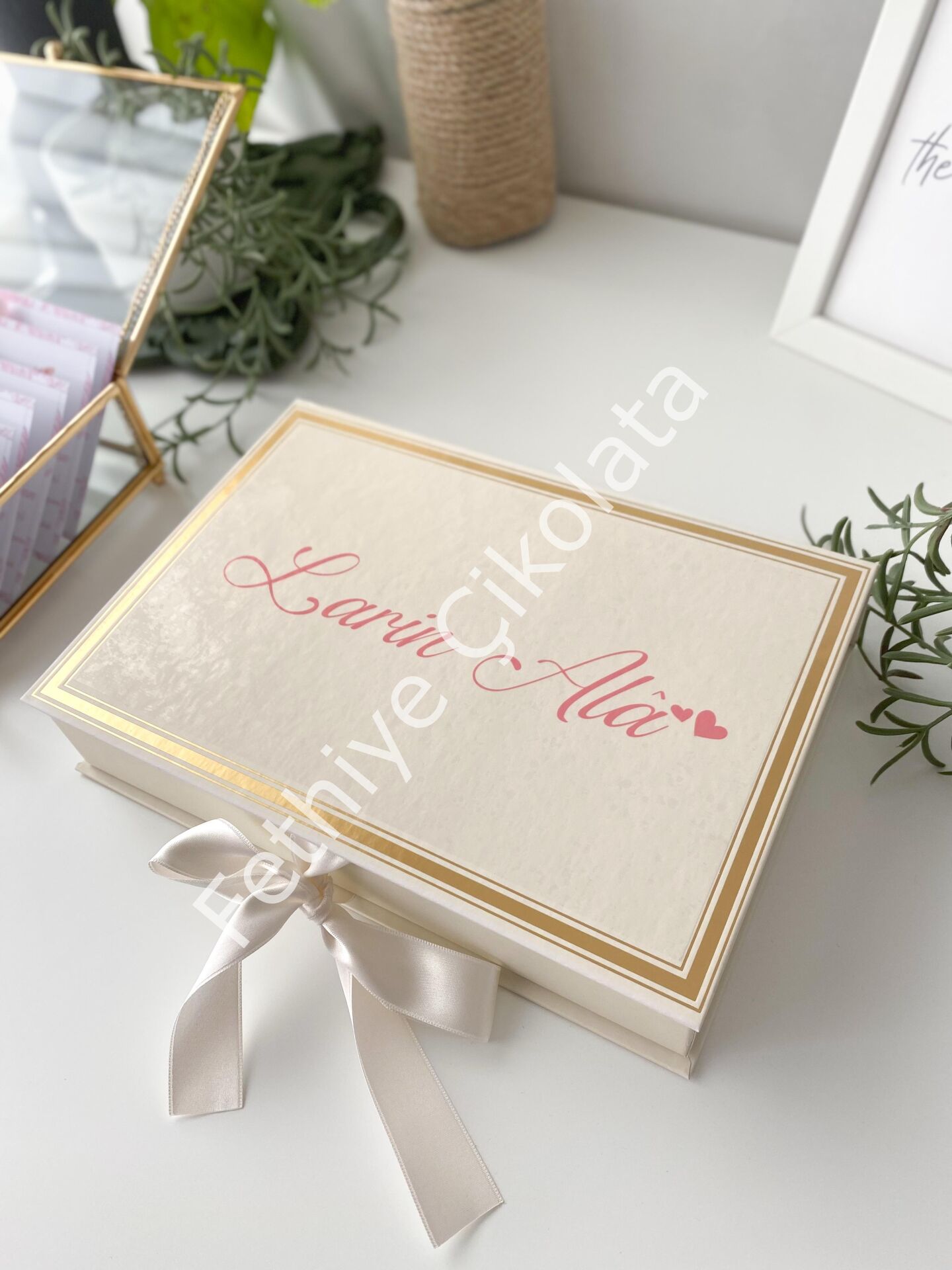 Mukavva Kurdeleli Dekoratif Çikolata Kutusu Kişiye Özel Tasarımlı Çikolata ve Hediyelikler, Bebek Çikolataları , Söz Nişan İsteme Çikolataları , Kolonyalalar , Hediyelik Ürünler , Kurumsal Çikolatalar YJ02A07 Mukavva Kurdeleli Dekoratif Çikolata Kutusu