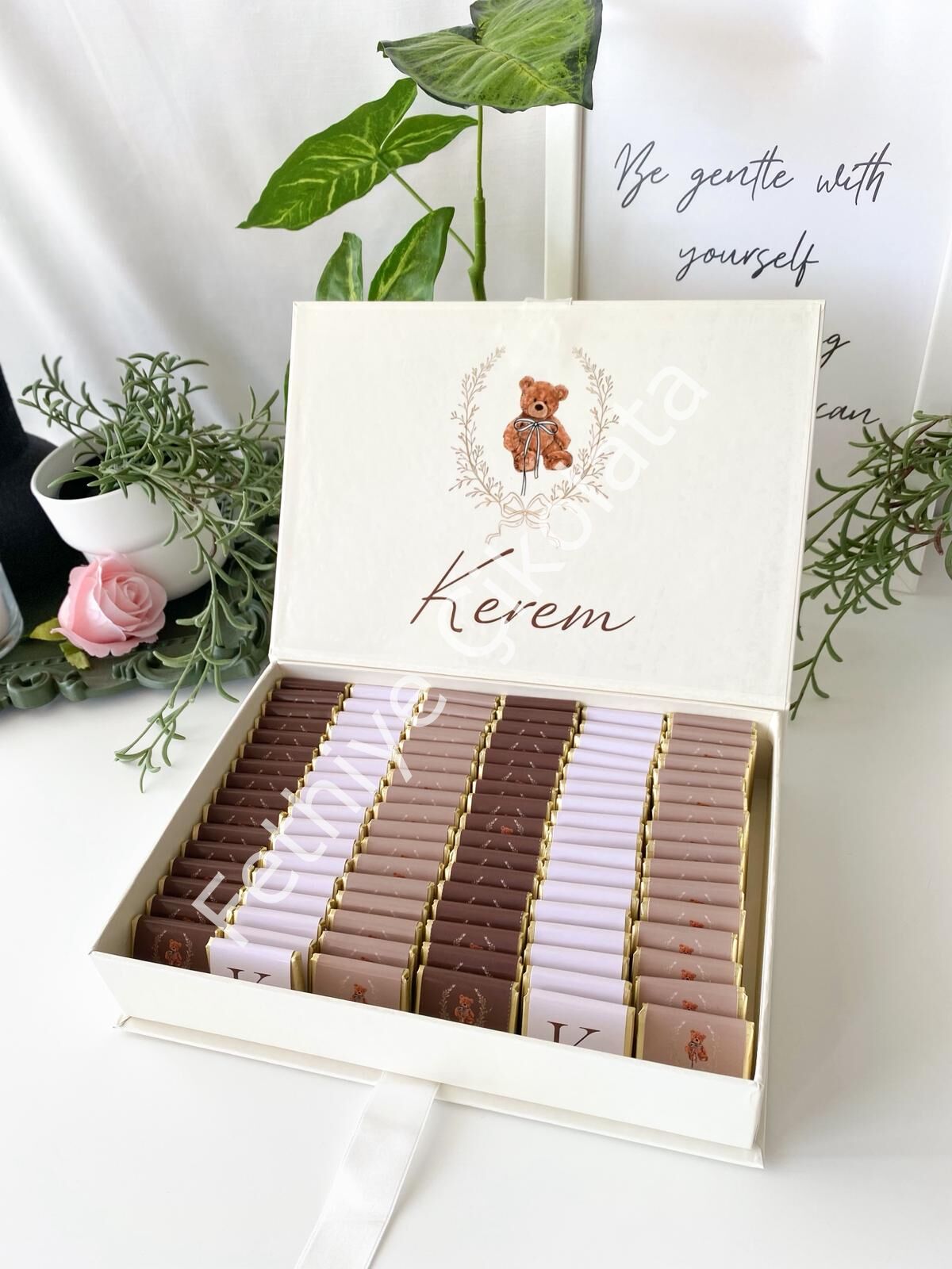 Çikolata Ebadı: 4x4 cm - Kutu Ebadı: 27x19x4,5 cm KREM RENGİ
