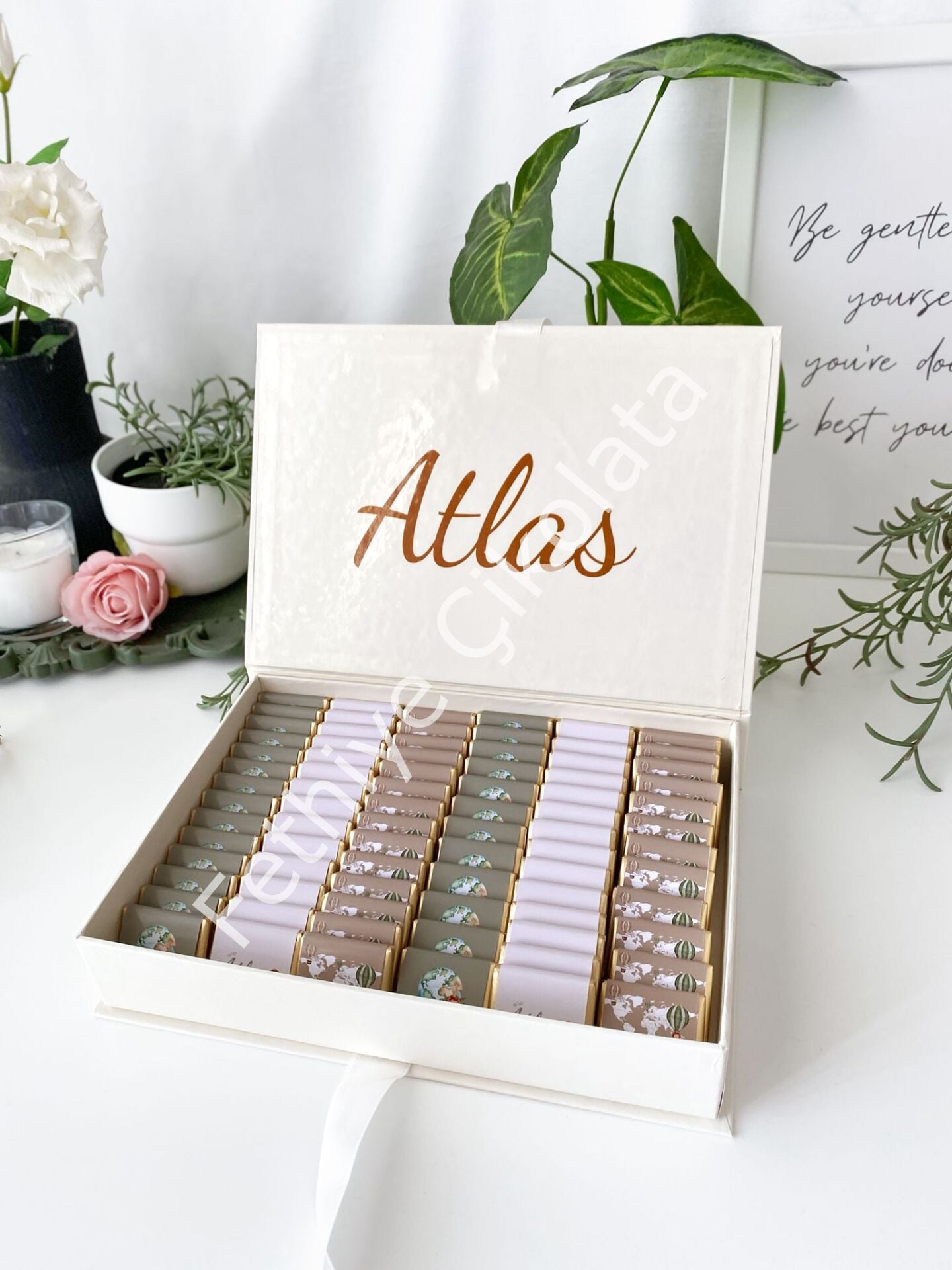 Çikolata Ebadı: 4x4 cm - Kutu Ebadı: 27x19x4,5 cm KREM RENGİ