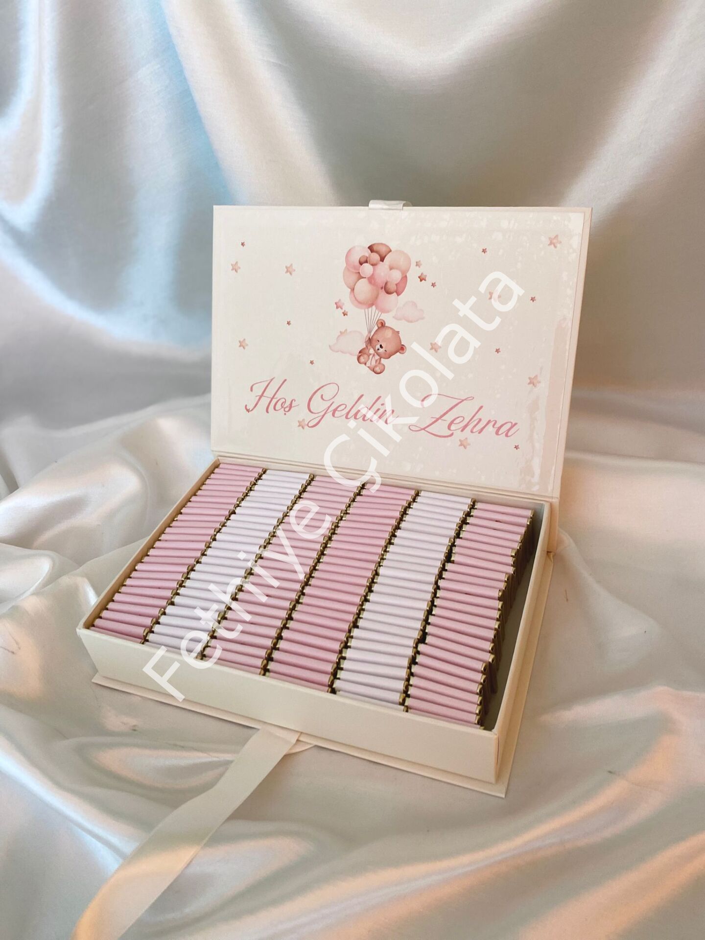 Mukavva Kurdeleli Dekoratif Çikolata Kutusu Kişiye Özel Tasarımlı Çikolata ve Hediyelikler, Bebek Çikolataları , Söz Nişan İsteme Çikolataları , Kolonyalalar , Hediyelik Ürünler , Kurumsal Çikolatalar YJ02A08sb Mukavva Kurdeleli Dekoratif Çikolata Kutusu