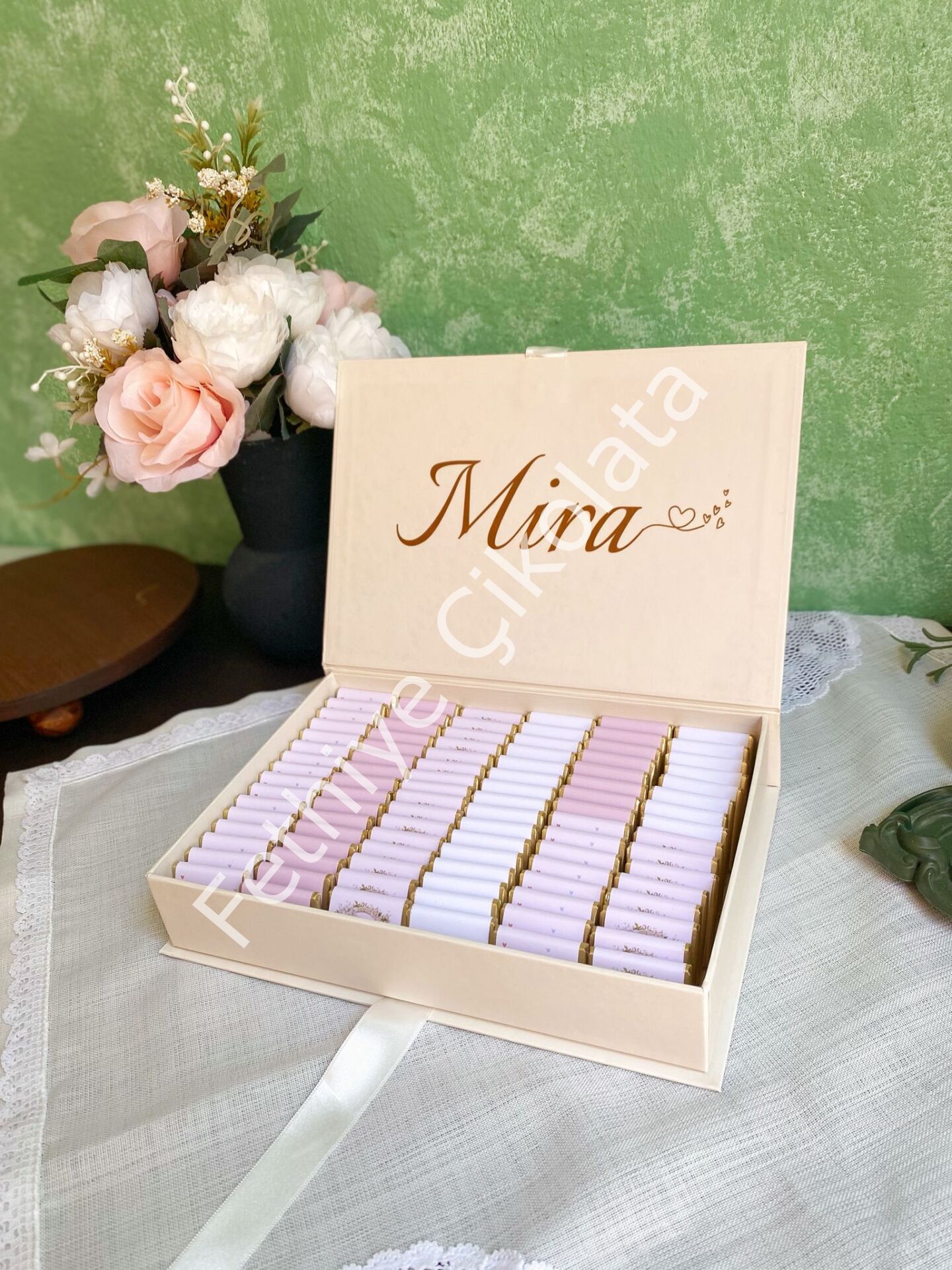 Mukavva Kurdeleli Dekoratif Çikolata Kutusu Kişiye Özel Tasarımlı Çikolata ve Hediyelikler, Bebek Çikolataları , Söz Nişan İsteme Çikolataları , Kolonyalalar , Hediyelik Ürünler , Kurumsal Çikolatalar YJ02A08sh Mukavva Kurdeleli Dekoratif Çikolata Kutusu