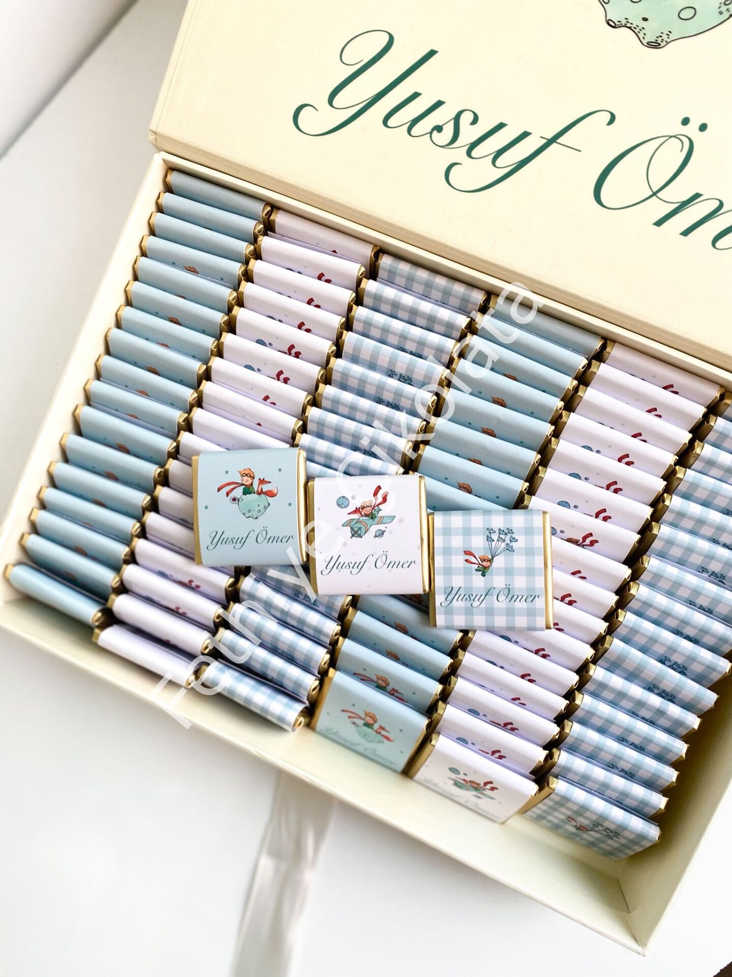 Çikolata Ebadı: 4x4 cm - Kutu Ebadı: 27x19x4,5 cm KREM RENGİ