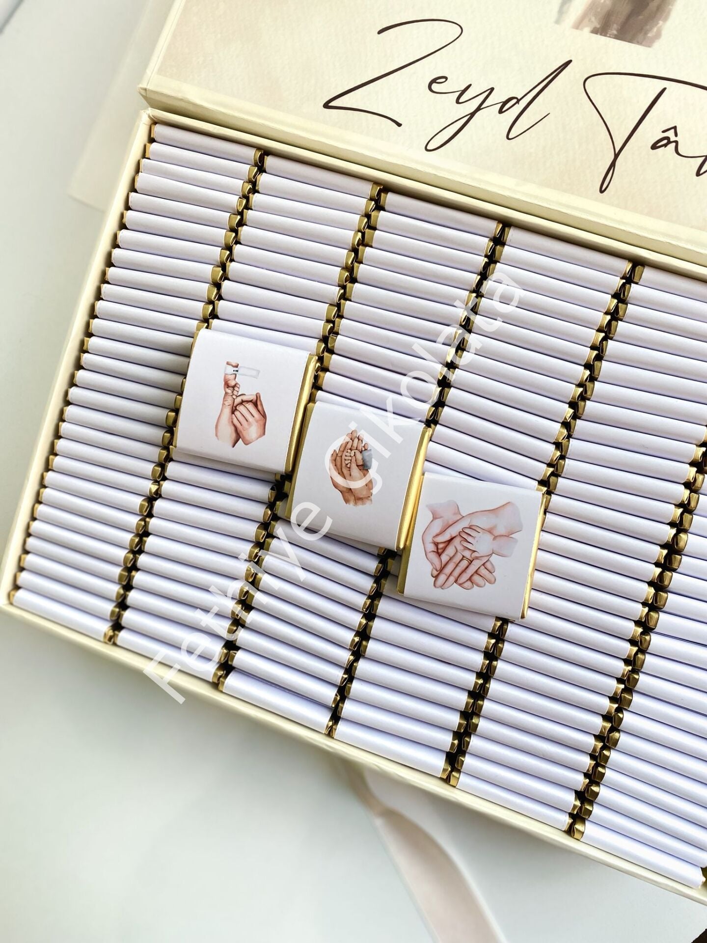 Çikolata Ebadı: 4x4 cm - Kutu Ebadı: 27x19x4,5 cm KREM RENGİ