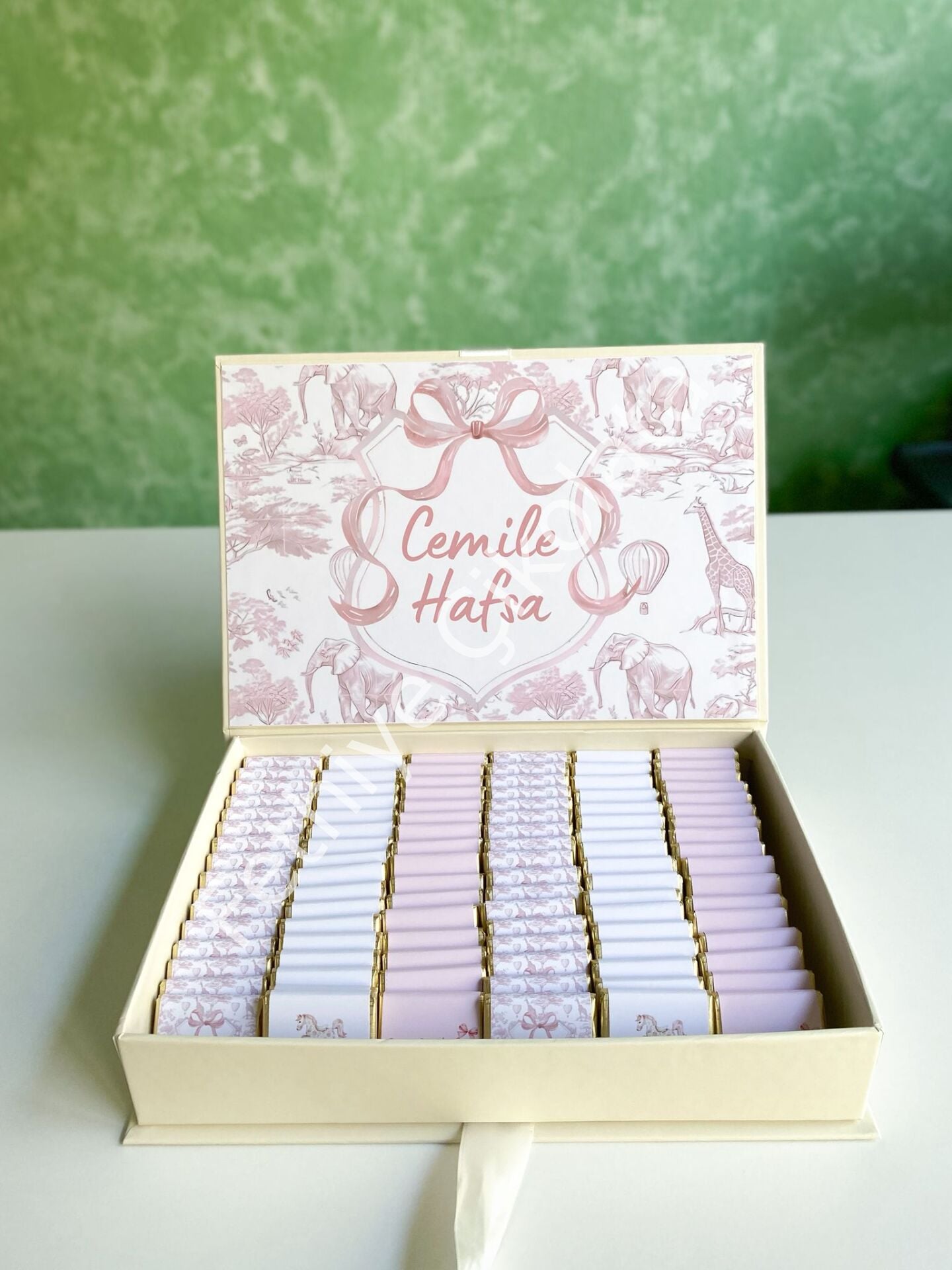 Çikolata Ebadı: 4x4 cm - Kutu Ebadı: 27x19x4,5 cm