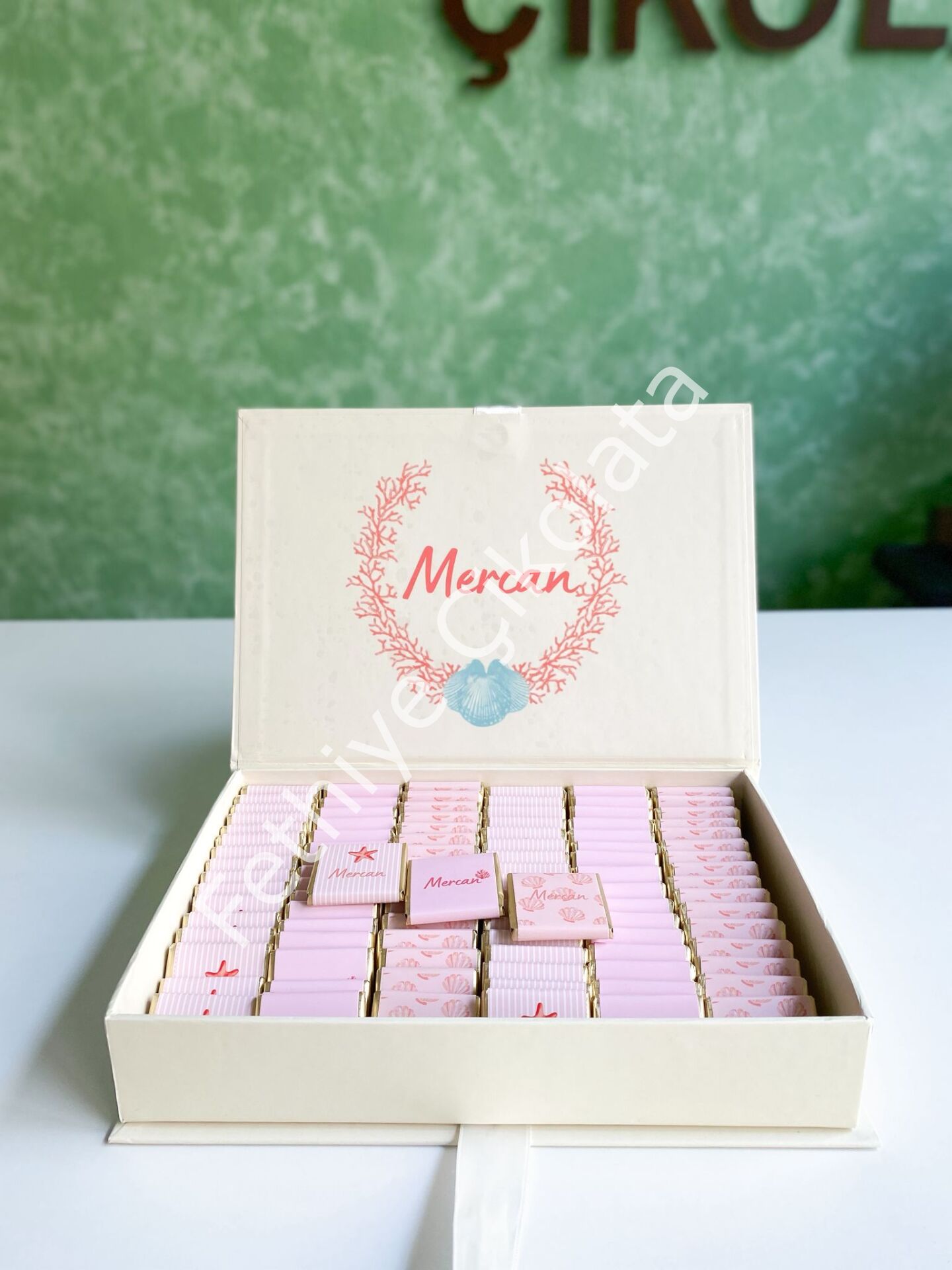Çikolata Ebadı: 4x4 cm - Kutu Ebadı: 27x19x4,5 cm