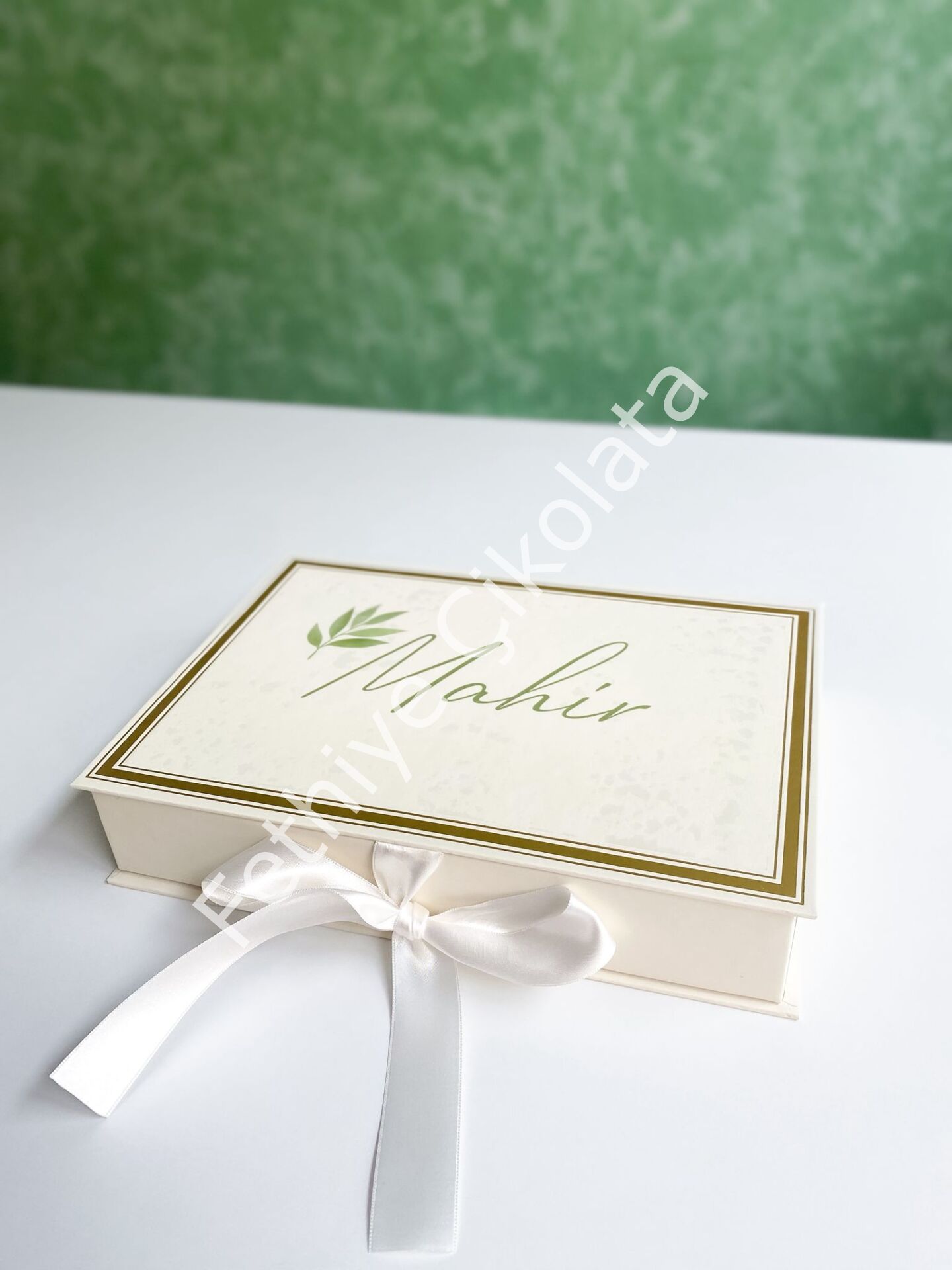 Çikolata Ebadı: 4x4 cm - Kutu Ebadı: 27x19x4,5 cm KREM RENGİ