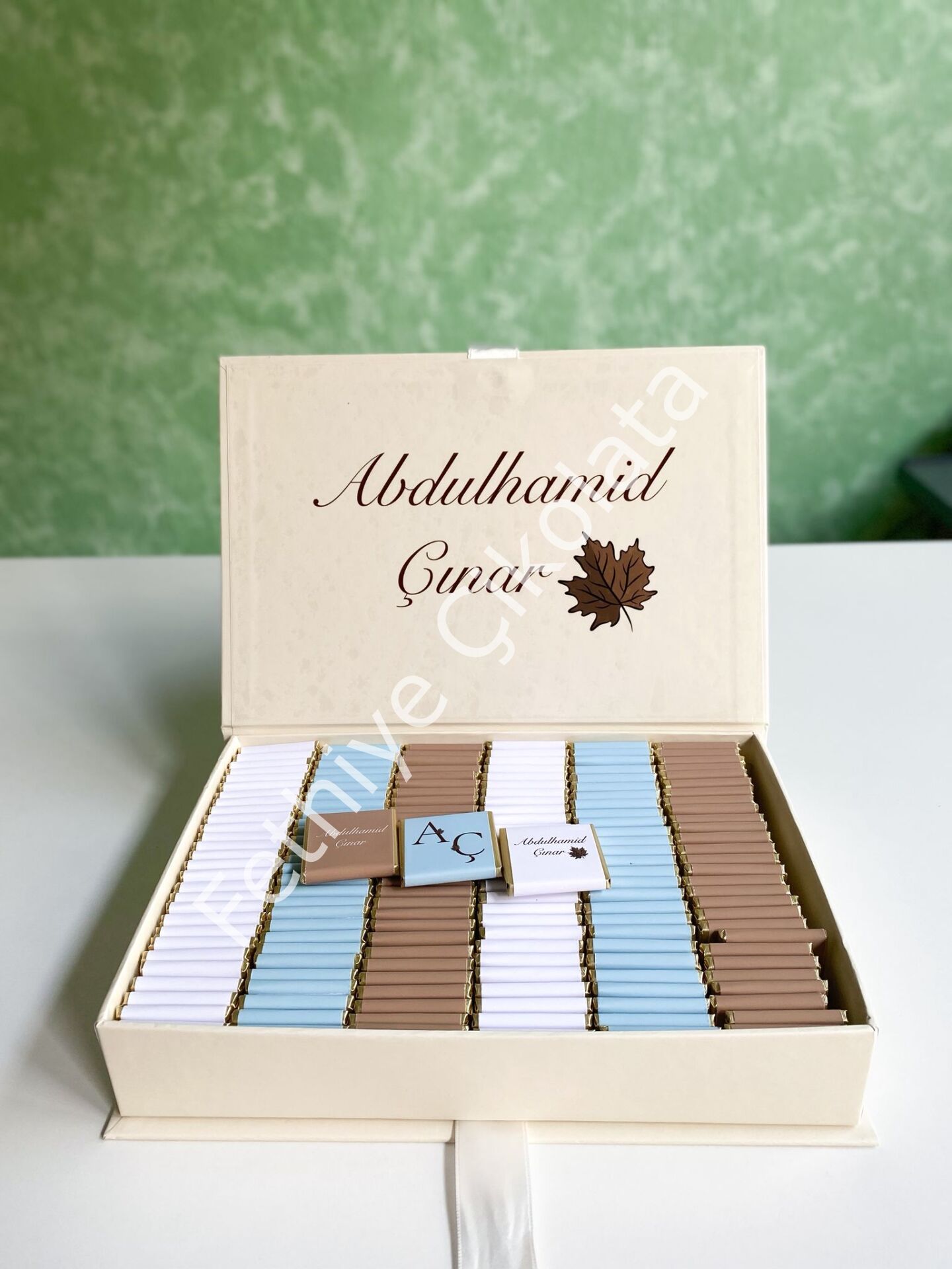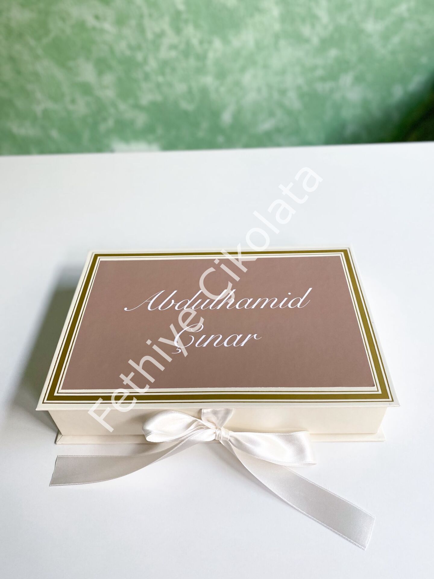 Çikolata Ebadı: 4x4 cm - Kutu Ebadı: 27x19x4,5 cm KREM RENGİ