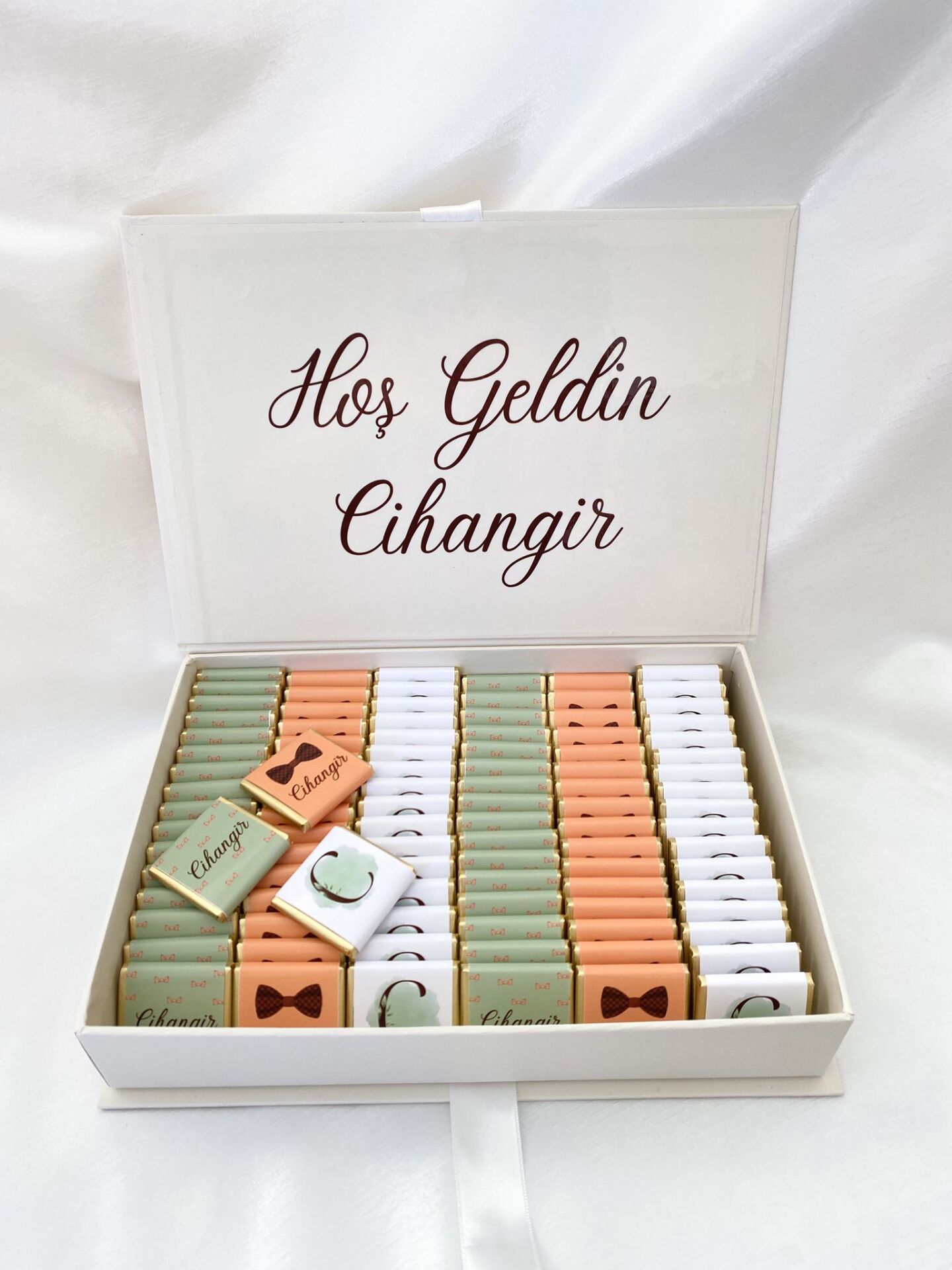 Çikolata Ebadı: 4x4 cm - Kutu Ebadı: 27x19x4,5 cm KREM RENGİ